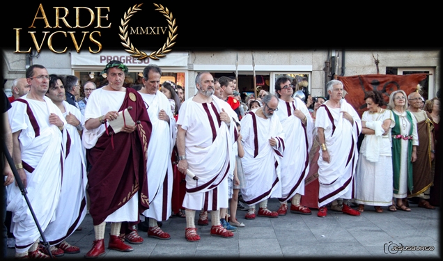 Alá polo ano 2012, xa existían 6 asociacións, nós debemos ser a sétima e hai que dicir que ano tras ano se vai ampliando o número de asociacións que forman parte do Arde Lucus, que implica isto? pois que cada vez o desfile que se pode ver pola Rolda da Muralla, é máis e máis extenso e a implicación da cidadanía é maior a medida que vai avanzando o número de asociacións. Todas somos asociacións que tratamos de recrear o máis fielmente posible a historia romana en Lugo naquela época. Todos os anos no desfile pois é impresionante de verdade a cantidade de xente que está pola Rolda da Muralla, a ilusión que ten de ver a todas as asociacións tanto de Lugo como as que veñen doutras cidades e mesmo doutros países, como pode ser Romanía, como pode ser Italia, Portugal, e todos, todos os desfiles do Arde Lucus son de verdade, impresionantes. Unha sensación de abarrote total e a xente, que é o bo que ten o Arde Lucus , que non é unha festa onde nos caracterizamos os membros das asociacións, toda a cidade atópase engalanada con xente caracterizada de romanos e de castrexos e iso polo que se comenta, é único no mundo.