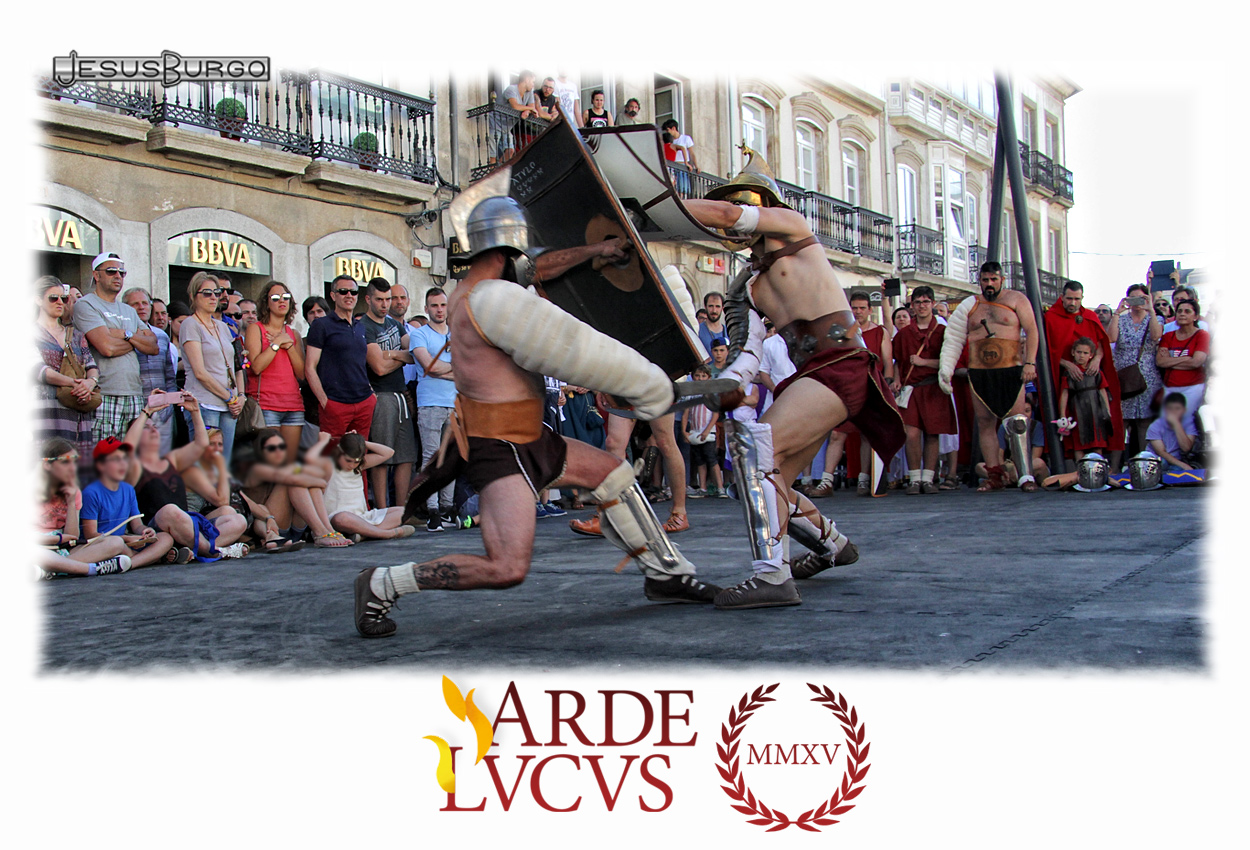 La última jornada del Arde Lucus se despidió con un conato de enfrentamiento entre las legiones romanas y las tribus castreñas en el que algunos se emplearon de forma rápida y contundente. El druida, un hombre de autoridad, tuvo que actuar de mediador con los jefes de las tribus castreñas para que estos aceptaran la propuesta de paz que les había realizado el Senado romano y que el propio César selló. Una vez realizado el acuerdo, el emperador romano se dispuso a abandonar el lugar escoltado por su guardia pretoriana, no sin antes decirles a las tribus autóctonas que podían asentarse en Lucus Augusti. Este fue uno de los actos más vistosos protagonizado por las asociaciones del Arde Lucus. Con la ceremonia que protagonizaron las vestales se clausuró esta edición preservando el fuego sagrado de Vesta.